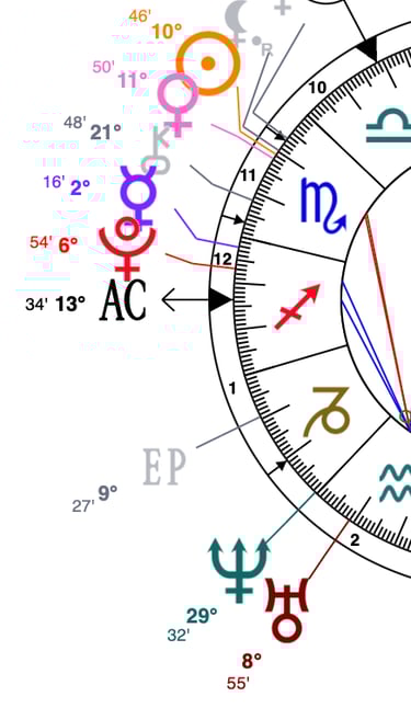 ♀ Vénus : Amour fusionnel ou exigeant → apprendre la douceur, la réciprocité, la lenteur.
