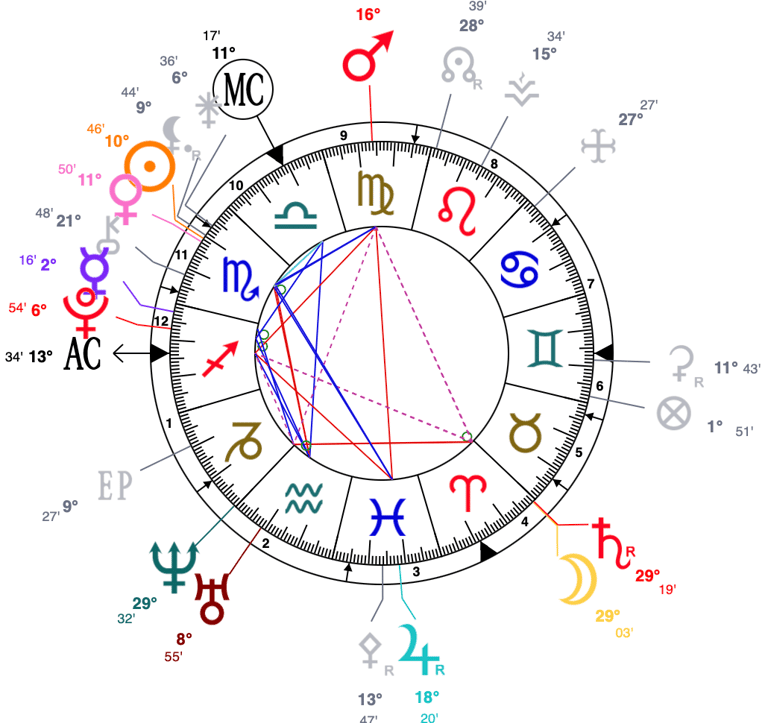 • Vénus en Scorpion (exil) : aime trop fort, trop vrai, parfois jusqu’à la peur de perdre. Apprend à aimer avec profondeur mais sans contrôle.